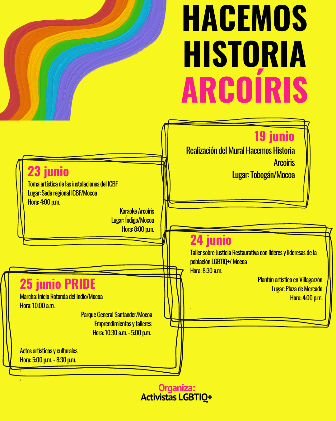 Llegó el mes del orgullo LGBT y desde abril Liderxs LGBTIQ+ de todo el Putumayo empezamos a trabajar como hormigas bajo el lema HACEMOS HISTORIA ARCOIRIS. Este mes buscamos recordar la historia de nuestros derechos, de las personas que con su luz arcoíris abrieron camino al andar.